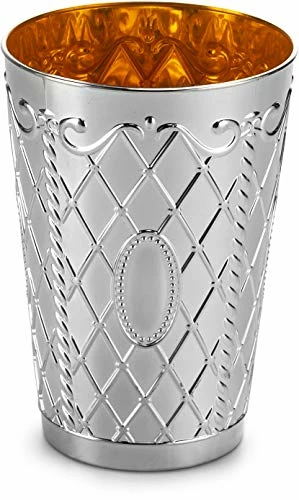 - Authentic Design. Inspired By The Artisanal Nature Of Fine Genuine Silver Kiddush Cup, Our High-end Disposable Kiddush Cup Is Created By Designers And Crafters Who Take Artisan Level Pride In Each Line, Designed With a Coordinating Regal Dimond Shape Pattern