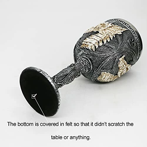 - HIGH QUALITY CRAFTSMANSHIP – This Dragon chalices goblets is made of fine resin and stainless steel lining ,Each piece is individually hand painted, color tone may vary slightly from pictures, which gives it a unique look.The bottom is covered in felt so that it didn’t scratch the table or anything