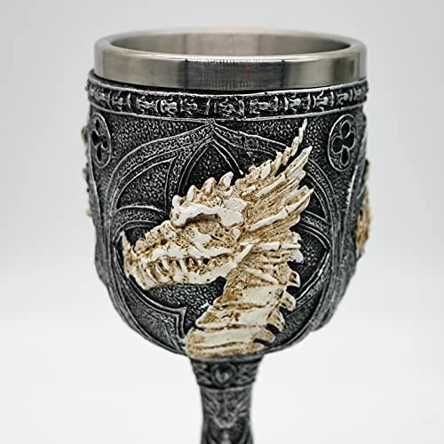 - MEDIEVAL Dragon Skull GOBLET – This Vintage silver goblets is 6.8″ tall, 3.1″ long and can hold up to 7 ounces of your favorite beverage. Nice cups to use during gaming nights or a themed party. It will also be a great decor for your home as well as a functional wine goblet for your day to day use!