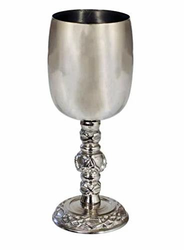 Each of these elegant chalices features an exquisitely molded stem that will take center stage and add a touch of refinement and sophistication to any table, altar or ritual. Each 8 oz. chalice is made of food grade stainless steel and measures approx. 6.75″ tall x 2.25″ diameter.