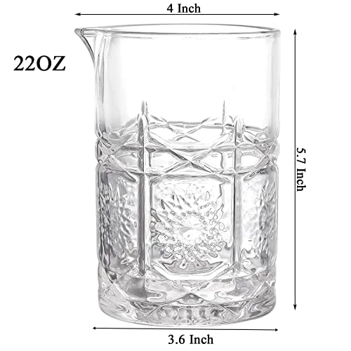 - Coloch set of 2 pack cocktail mixing glasses measures 3.6″ x 5.7″, with the capacity of 22 oz. The size is suitable for mixing and stirring your drinks without spilling and making a mess.