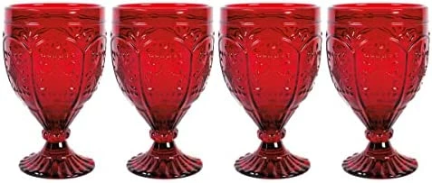 I wanted ruby red glassware to use during the holidays and these F&F glasses are just right. The color is a vivid ruby red, the pressed glass design is attractive and they look great with holiday dishes. They came well packaged, no breakage. Each glass was marked Hand Wash Only.