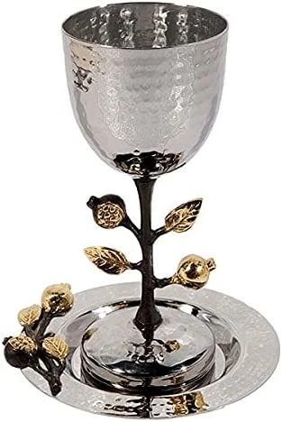 - ELEGANT DESIGN – This kiddush cup features sculpted stem and base with a gold accent grape vine or Pomegranates branch , recurring themes in jewish tradition.