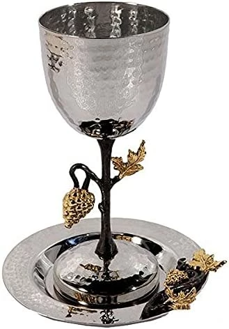 - QUALITY MATERIALS – thus kiddush cup and saucer are made of high-end durable stainless steel with a hammered finish. This kiddush cup will be part of your shabbat and jewish meals for years to come.