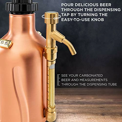 - DISPENSER TAP BUILT RIGHT IN | No More Messy Pours! | Our High-Tech Pitcher Has its Own Integrated Spout, So You Can Line Up a Pint Glass & Dispense Instantly Without Missing a Drop | Twist the Simple Knob to Start & Stop, Then Use the At-a-Glance Measuring Tube to See Carbonated Contents & Track How Much is Left