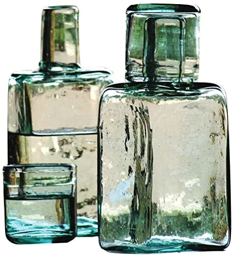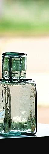 This nightstand water jug is almost exactly what I was looking for. Something that is good looking, with a lid and a matching cup. In this case, the matching cup IS the lid. I love the look of it. It’s heavier than expected but that makes me feel confident in it’s sturdiness and less concerned about knocking it over in the middle of the night. There are only 2 things that keep me from giving it all 5 stars. One is that the neck of the bottle is very tiny and pretty much impossible to get any cleaning tool in it, so I would not recommend putting anything but water in it. I just squeeze a fair amount of soap in it, give it a good shake, and let it sit for an hour or 2 before rinsing it until all the bubbles are gone. Second thing being that it’s handmade, the cup/lid doesn’t actually sit flush on the top of the bottle, so mine is always cocked to the side a little. It bothers my OCD.