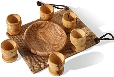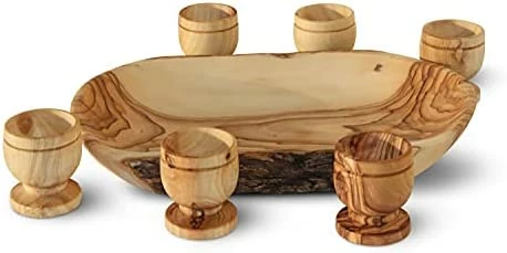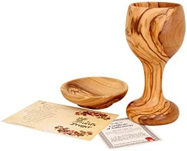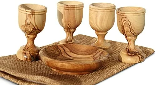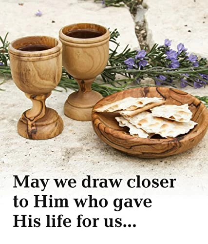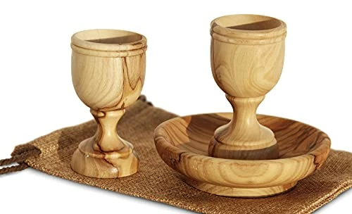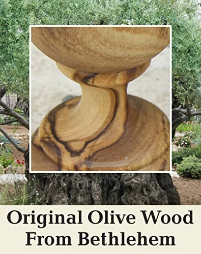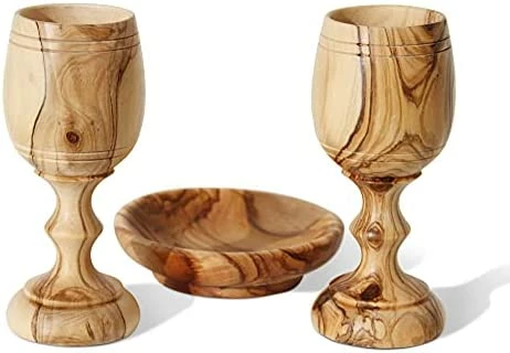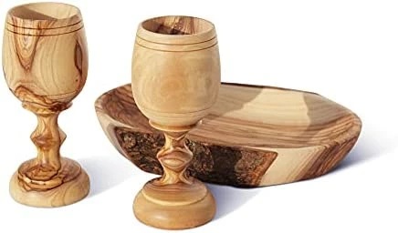 Exquisite craftsmanship and quality! Each piece is uniquely designed by God through nature so that no two are exactly alike now or ever. This set is most meaningful for it’s Holy Communion mission from Jesus written to us all in the New Testament of our Bibles…to do this in remembrance of Him. How moving it is to do so with wood carved from the very olive trees of His birthplace!