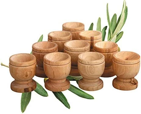 Having read reviews before purchase I wasn’t sure exactly what to expect…surprisingly very pleased!!! I got the 6 cup set. Yes, it is small, but cups are larger than expected. They are 1 5/8″ tall and 1 1/8″ wide, very stubby & cute. They hold 3/4 tsp liquid; the same amount the individual church communion cups hold. The tray is a 3 1/2″ round, sits 1″ tall on a 1/4″ base. Plenty big and deep enough for crackers. The wood looked bare, so I coated them with olive oil to darken them and I like them much better with darker finish. Yes, I wiped the oil off, and residue will dry out. I plan to purchase a dollar store small wooden tray that will hold the crackers, juice and set. I also checked for leakage, none leaked. Communion will be very special for my Hospice patients!