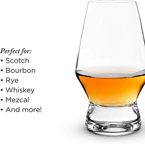 - PERFECT FOR COCKTAILS AND SINGLE-MALT SCOTCH β A heavy base and angled bowl narrows into a delicate, slender rim to enhance neat pours. This set of crystal drinkware will be your go-to glasses for daily sipping as well as a necessity for Scotch tasting.
