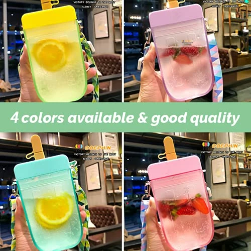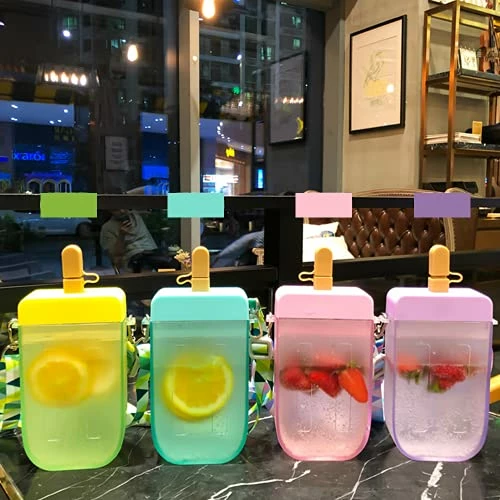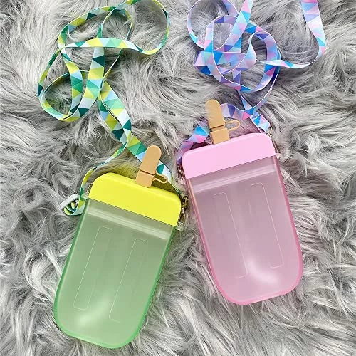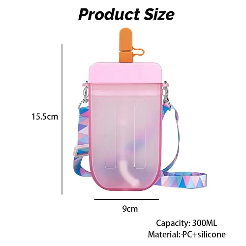 - ? [Adjustable shoulder strap] – Popsicle shaped water bottle can be carried on the back, holds 10oz/300ml of liquid, wide shoulder strap adjustable up to 50 inches, suitable for children and adults.